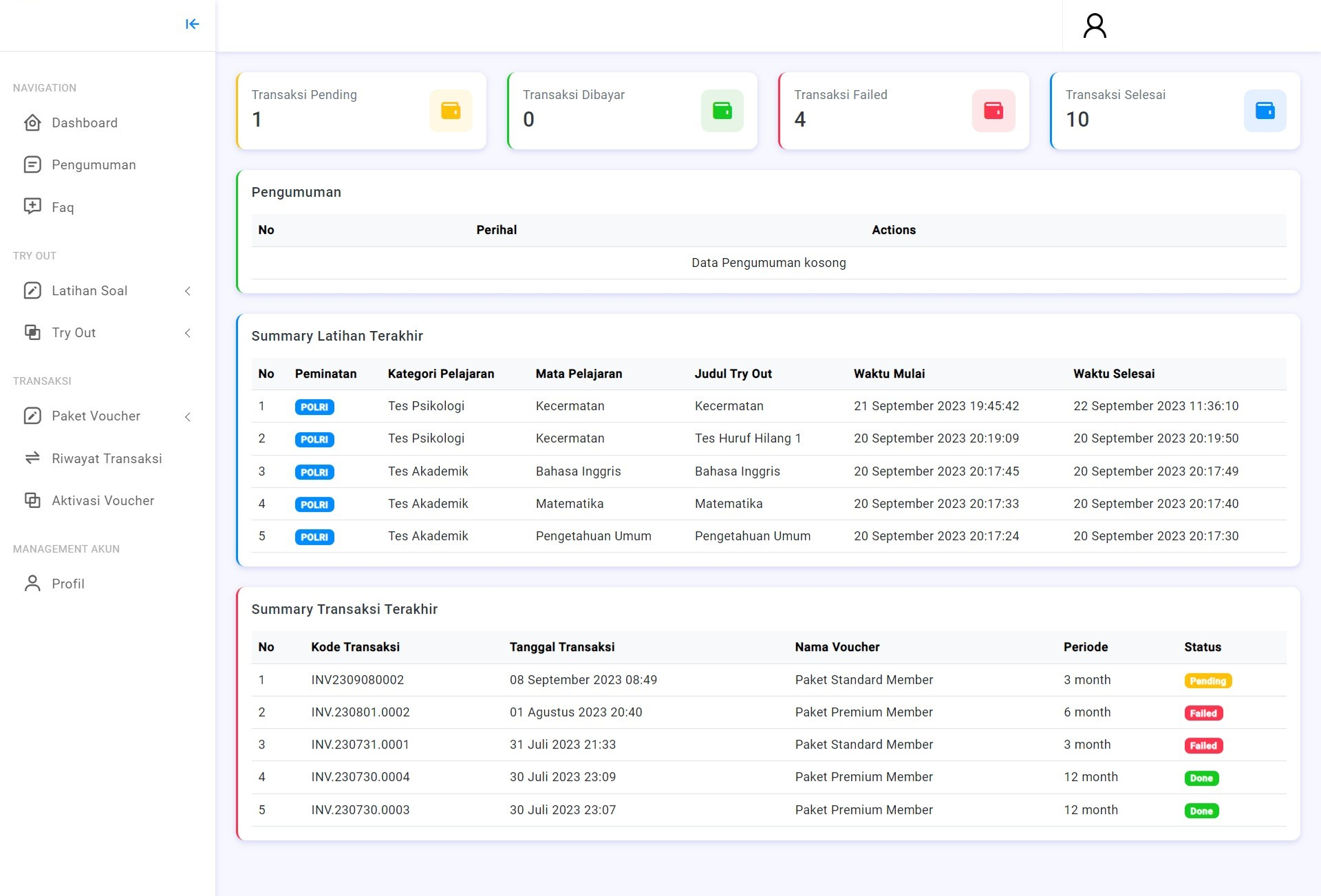 Membantu casis POLRI, TNI, CPNS dan Kedinasan dalam berlatih agar lebih siap menghadapi tes yang sebenarnya
